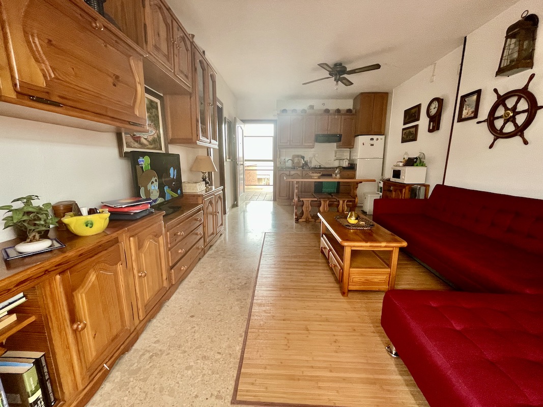 - Cuenta con 2 Dormitorios (uno con armario doble empotrado), 1 baño completo, cocina integrada en el salón y gran terraza que ocupa la mitad del edificio (sólo dos propietarios en el mismo).