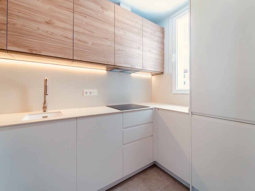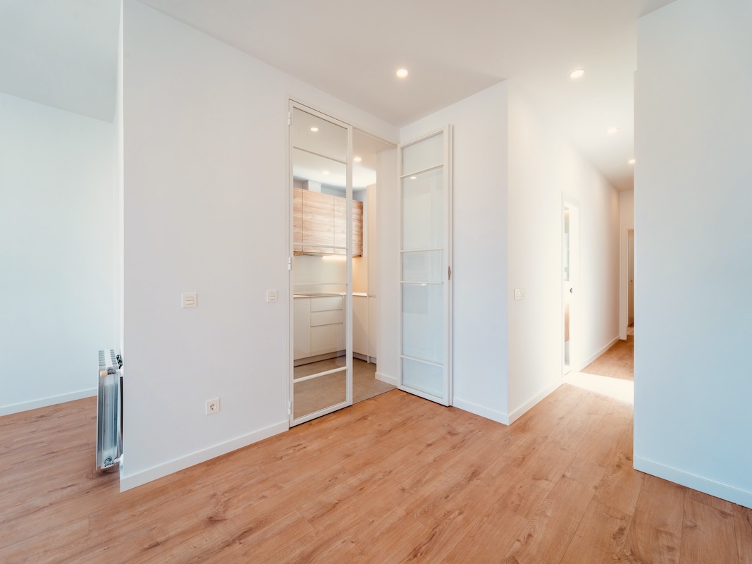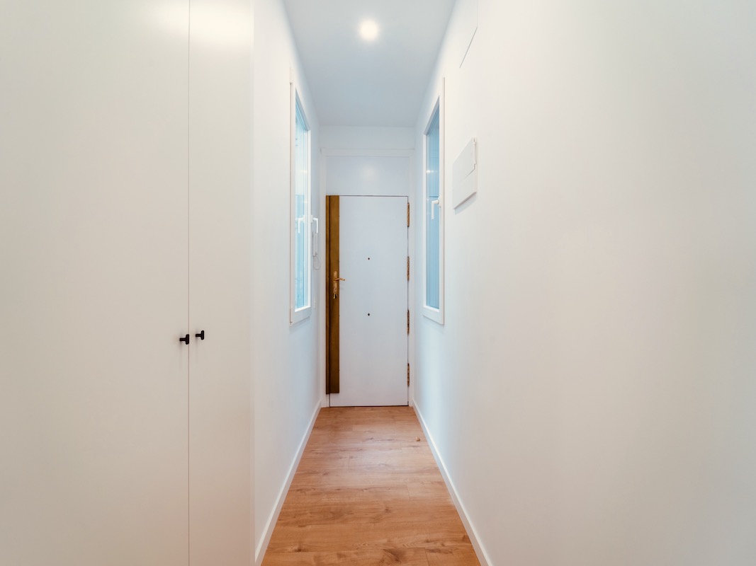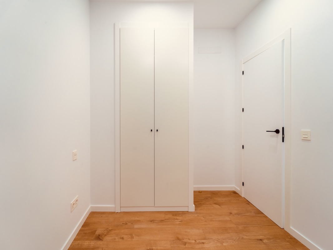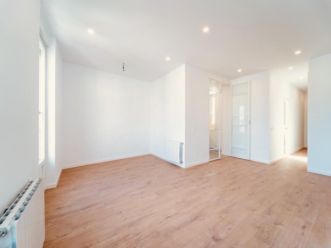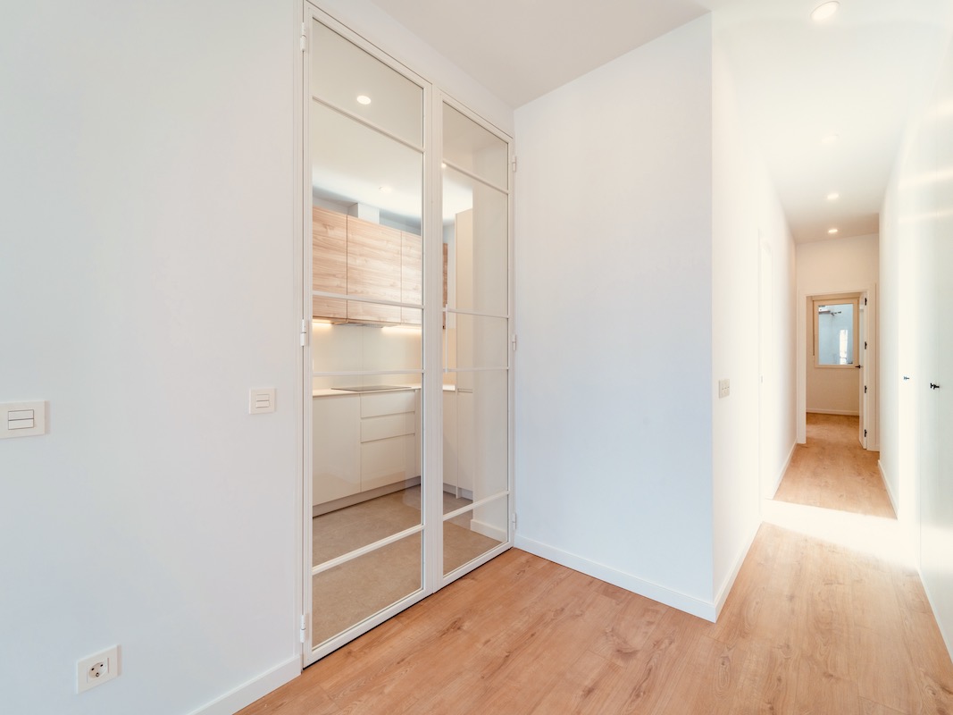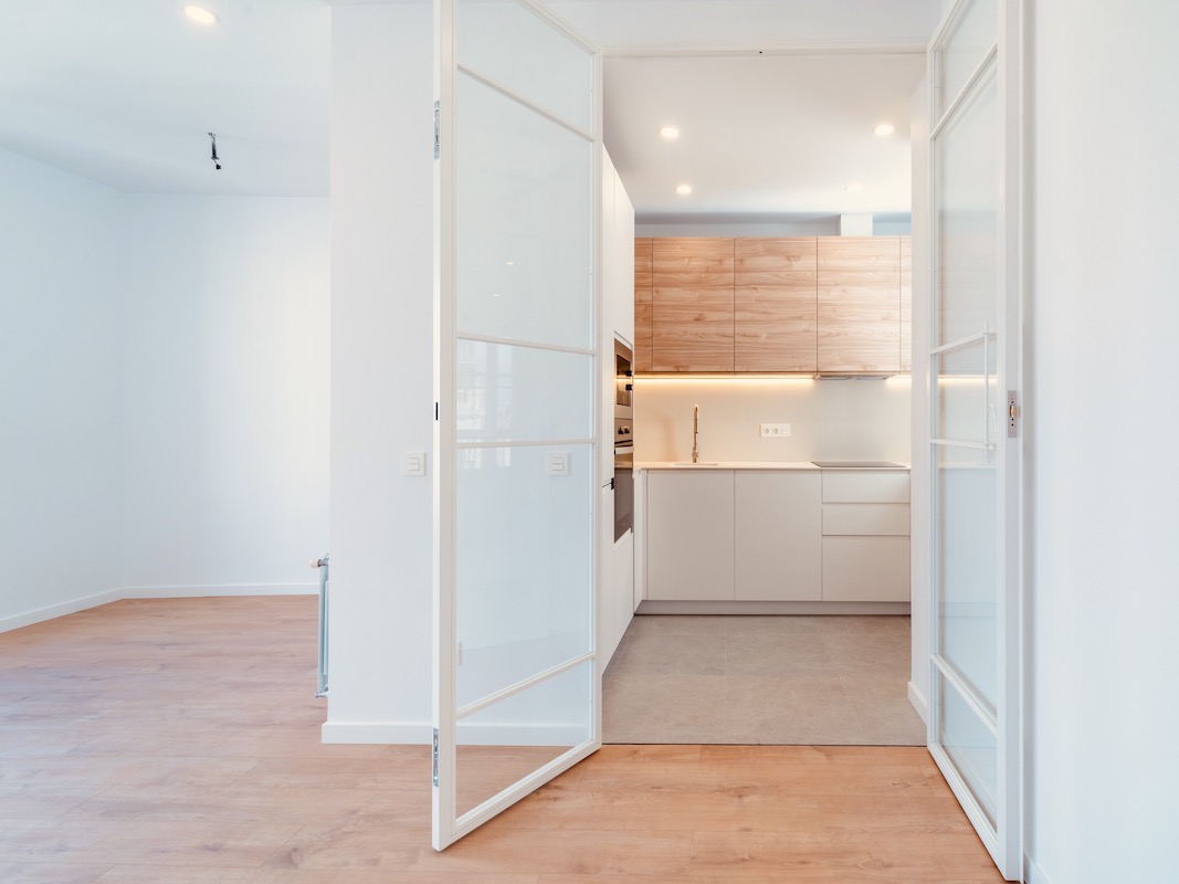 - Inmueble: Amplio salón y comedor, cocina independiente a medida totalmente equipada con muebles y electrodomésticos. Lavadero, ventanas de climalit doble con rotura de puente térmico, puertas de madera lacadas en blanco, suelos de tarima y paredes blancas lisas.