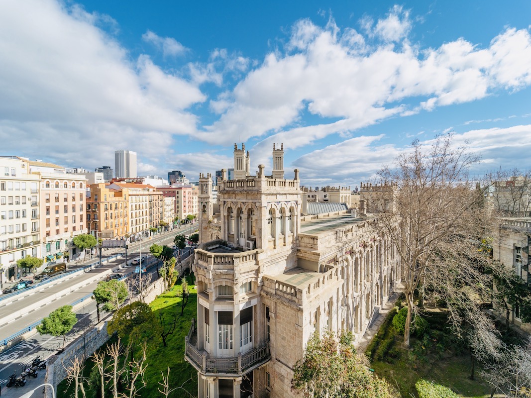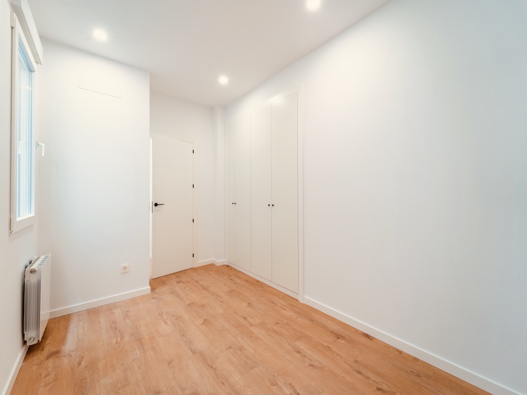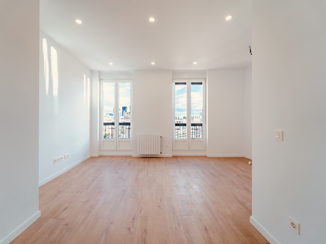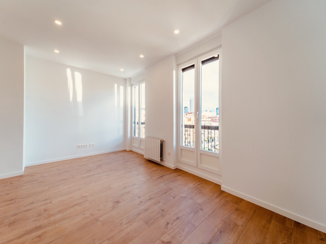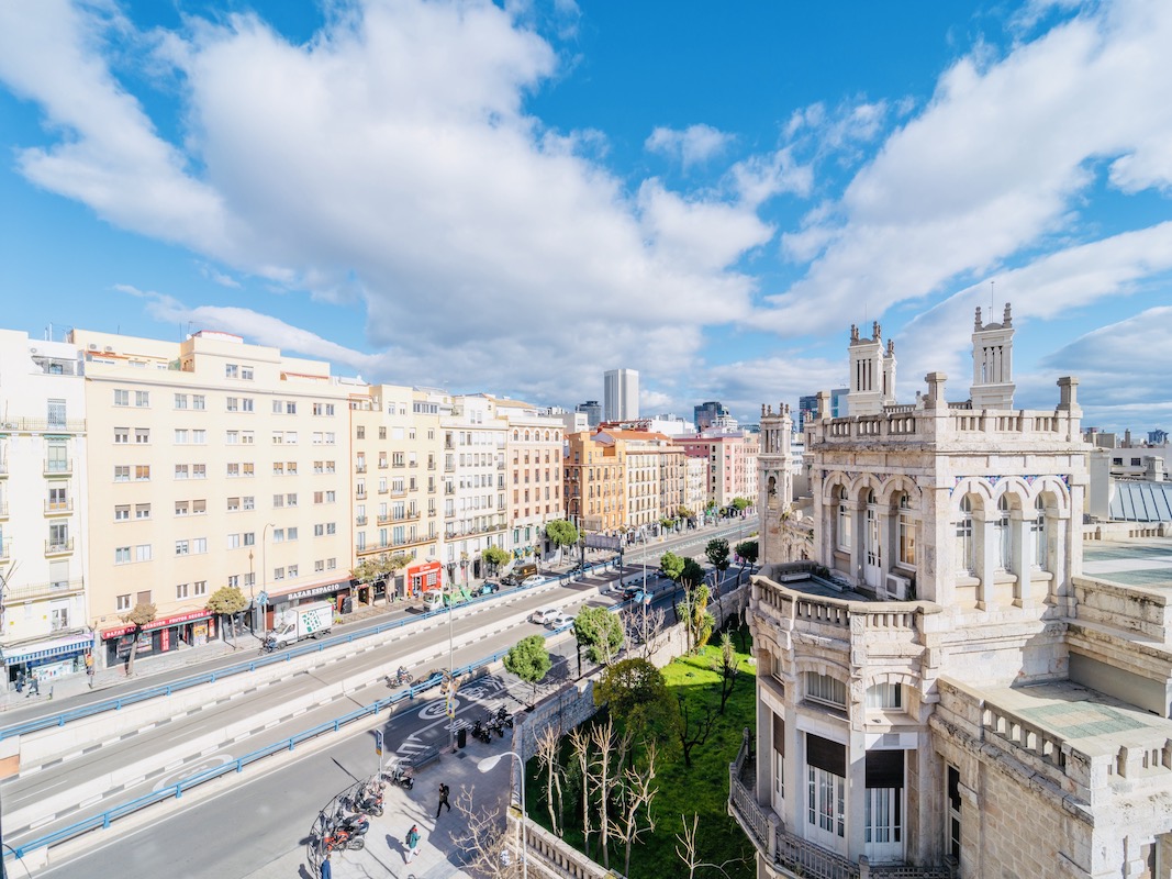 - Salón y habitación principal dan al exterior, con vistas despejadas de Madrid. Las otras habitaciones dan al patio interior.